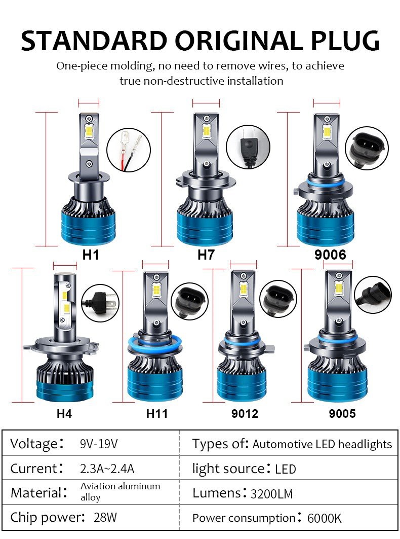 Εργοστάσιο Προμήθεια Μπλε Αλουμινίου H1 H3 H3 H11 9005 9012 3570 τσιπ 28w 3200lm k6 οδήγησε προβολέα
